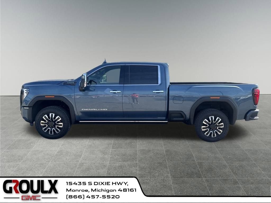 2025 GMC Sierra 2500HD Denali Ultimate Sierra 2500HD Denali Ultimate, 4D Crew Cab, Duramax 6.6L V8 Turbodiesel, 10-Speed Automatic, 4WD, Downpour Metallic, Alpine Umber Leather, 120-Volt Bed Mounted Power Outlet, 120-Volt Instrument Panel Power Outlet, 2 Charge-Only Rear USB Ports, 2 Charge/Data USB Ports Inside Center Console, 2 USB Ports, 2-Speed Active Transfer Case, 220-Amp Alternator, Bed View Camera w/2 Trailer Camera Provisions, Bose Premium Series 12-Speaker System, Deep-Tinted Glass, Electric Rear-Window Defogger, Floor-Mounted Center Console, Front Rain-Sensing Wipers, Gooseneck/5th Wheel Prep Package, HD Surround Vision, Heated 2nd Row Outboard Seats, Heated Driver & Front Outboard Passenger Seats, Hill Descent Control, Inside Rearview Auto-Dimming Rear Camera Mirror, Keyless Open & Start, LED Cargo Area Lighting, LED Smoked Amber Roof Marker Lamps, Manual Tilt-Wheel/Telescoping Steering Column, Multicolor 15 Diagonal Head-Up Display, OnStar Services Capable, Power Front Passenger Windows w/Express Up/Down, Power Sliding Rear Window w/Defogger, Power Sunroof, Preferred Equipment Group 5SB, Push Button Start, Rear Cross Traffic Alert, Rear Wheelhouse Liners, Remote Vehicle Starter System, Safety Alert Seat, Signature Denali Ultimate Grille in Vadar Chrome, SiriusXM w/360L Trial Subscription, Snow Plow Prep/Camper Package, Spray-On Pickup Bedliner w/GMC Logo, Steering Wheel Audio Controls, Technology Package, Trailer Cam Provisions & Trailer Viewing Software, Trailer Side Blind Zone Alert, Trailer Tire Pressure Monitor Sensors, Ultrasonic Front & Rear Park Assist, Unauthorized Entry Theft-Deterrent System, Universal Home Remote, Ventilated Driver & Front Passenger Seats, Wireless Charging, Wireless Phone Projection, X31 Off-Road Package.