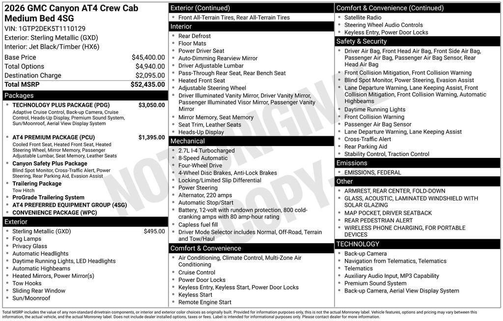 - Warranty: <<< Preliminary 2026 Warranty >>>