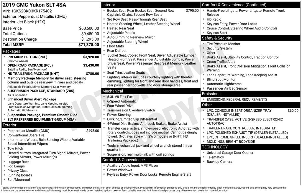 Experience the exceptional craftsmanship and attention to detail that sets the GMC Yukon apart. Visit our showroom today and let us demonstrate how this remarkable SUV can enhance your driving lifestyle. With its impressive performance, premium amenities, and striking design, the 2019 GMC Yukon SLT is a true standout in the full-size SUV segment.