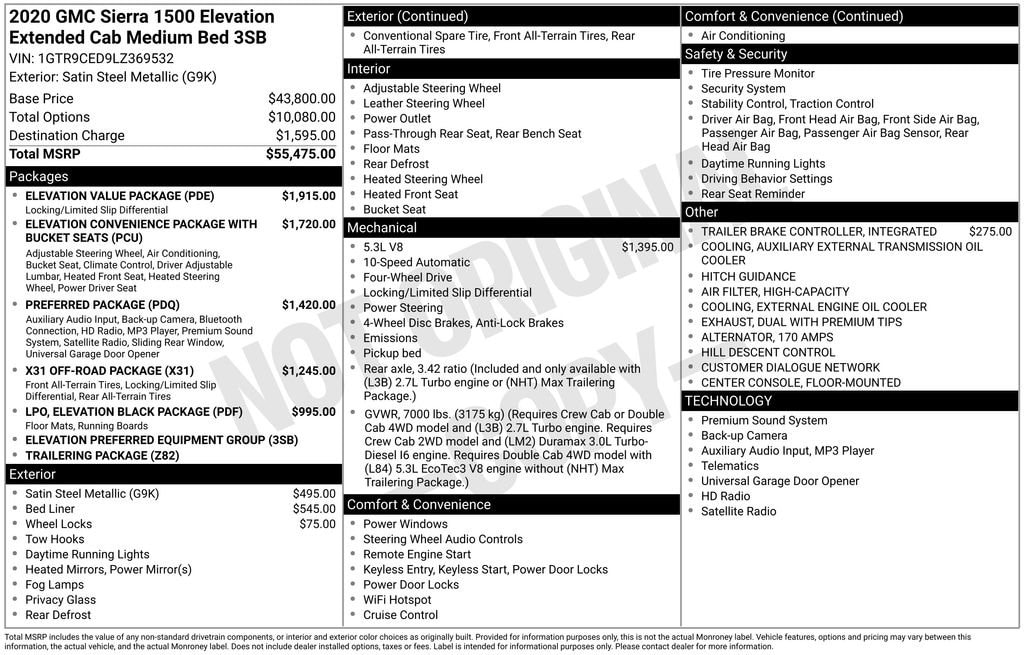 Whether you're hauling heavy loads, tackling rugged terrain, or simply enjoying the daily drive, the 2020 GMC Sierra 1500 Elevation is the perfect companion. With its impressive power, advanced technology, and exceptional attention to detail, this truck is a true standout in its class.