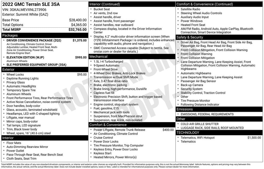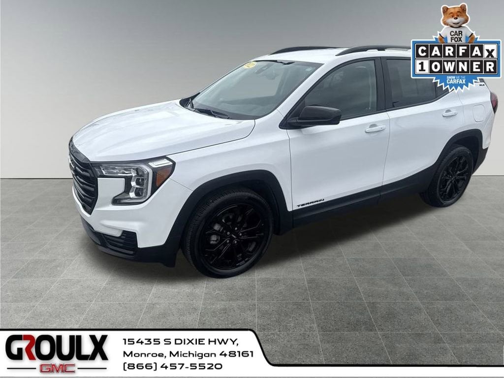 CARFAX One-Owner. Clean CARFAX. Priced below KBB Fair Purchase Price! Terrain SLE, 4D Sport Utility, 1.5L DOHC, 9-Speed Automatic, FWD, Summit White, Jet Black Cloth, 8-Way Power Driver Seat Adjuster, Black GMC Center Caps w/Red GMC Lettering, Black Mirror Caps, Darkened Front Grille, Driver & Front Passenger Heated Seats, Driver Convenience Package, Dual-Zone Automatic Climate Control, Elevation Edition, Power Driver Lumbar Control, Preferred Equipment Group 3SA, Remote Start, Roof-Mounted Luggage Rack Side Rails, Wheels: 19 x 7.5 Gloss Black Painted Aluminum.